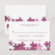 Une carte de réponse coordonnée avec des nuances de pièces de puzzle rose. <a href='http://www.freepik.com/free-vector/puzzle-background-free-for-download_714024.htm'>Conçu par Freepik (). </a>() La carte est facile à customiser avec votre libellé, police, couleur de police et choix de six types de papier.<br/>() Pas exactement ce que vous cherchez? Tous nos produits peuvent être conçus sur mesure pour répondre à vos besoins sans frais supplémentaires.<br/>() Contactez-nous simplement à l'adresse heartfelthelper@gmail.com<br/>() Coordination des produits disponibles : Pièces de puzzle Invitation