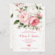 Elégante carte de mariage ornée de pivoines roses rousses, de roses blanches, de verdure luxuriante et de confettis dorés scintillants, parfaite pour une célébration romantique et intemporelle.