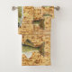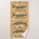 Ces serviettes ont toute une école de walleyes posés sur des planches de bois. La serviette de bain comprend le texte facultatif.