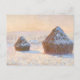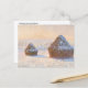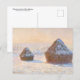 Une carte postale d'art avec le tableau de Claude Monet (1940-1926), Piles à roues - Effet neige, Matin (1891). Un paysage enneigé avec des piles de blé au lever du soleil.