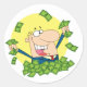 Si vous avez déjà rêvé d'être dans un tas d'argent alors ce design est pour vous. Le dessin est fait d'un type qui est très heureux puisqu'il est assis dans un tas d'argent tout en tenant quelques notes dans ses mains. Ce tas de design d'argent semble superbe sur ces autocollants. Parfait pour vous-même ou comme cadeau