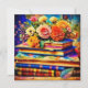 Jolie pile de livres vintages recouverts de jolies roses et fleurs orange, jaune et rose. Beau art aérien.