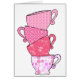 Carte de voeux de pile de tasse de thé rose (blanc à l'intérieur)