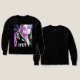 The design features a stylized black and white photo of a woman in a power pose, layered over a monochrome portrait with the Roman numerals MMXX (2020) covering her mouth, symbolizing a time of silent reflection or being silenced. The entire piece is energized by vibrant neon pink and blue abstract strokes and grunge/halftone effects, giving it a distinct Cyberpunk, Y2K, and Pop Art aesthetic. It’s a powerful, fashion-forward statement piece perfect for fans of edgy streetwear and modern digital collage art.