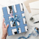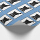 Le papier unique d'emballage cadeau de pharmacien dans le pilon et le mortier conçoivent sur un arrière - plan bleu. Perfectionnez pour envelopper un cadeau pour l'obtention du diplôme de PharmD ou n'importe quel pharmacien.