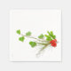 La serviette en papier représente le thème des vacances hivernales, y compris les baies à feuillage persistant et rouges.