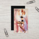 Une carte de visite en pin rose avec une jolie tête rouge qui lui coupe les cheveux. carte de visite idéal pour les coiffeurs et les salons.