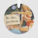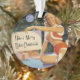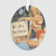 Un ornement de Noël orné d'une illustration vintage des années 1950 d'une jolie petite pinup dans une tenue père Noël portant une pancarte. Customisez le dos avec votre propre sentiment. Cool rétro !