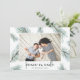 Partagez vos voeux de vacances avec ces cartes de Noël modernes avec votre photo préférée horizontale ou paysagère flanquée de bouges de pin aquarelle en vert d'épinette chic. "Paix sur Terre" apparaît en bas en lettres manuscrites. Personnalisez avec vos noms et l'année en dessous.