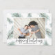 Un design moderne et élégant de carte de vacances avec votre photo préférée orientée paysage ou horizontale entourée de pics vert d'eau et de la verdure de Noël. "Jours fériés les plus heureux" apparaît sous la forme de lettres manuscrites. Personnalisez avec votre nom de famille le long du bas.