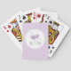 Simple deux cônes de pin dessinés en violet avec aiguilles de pin gris sur un arrière - plan blanc circulaire qui est sur une toile de tissu violet effet matière. Une partie du jeu de cônes de pin de mariage d'hiver. Jolis tons violets, blancs et gris. Modifiez cette carte de jeu mariage avec votre propre mariée et mariés premier initial. Des cartes à jouer simples mais élégantes. Idéal pour un cadeau à la mariée et au marié, les faveurs des invités, ou pour des tables à la campagne, la nature, l'hiver ou les mariages rustiques de cône de pin. Dessin et dessin au crayon original par Sarah Trett.