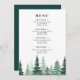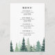 Rustic Watercolor Pine Forest Menu de mariage d'hiver.