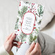 Célébrez la saison avec cette carte de vacances magnifiquement conçue Pine and Berries. Parfait pour répandre la joie des vacances, cette carte rustique présente d'élégantes branches de pins et des baies rouges. Ajoutez une touche personnelle à vos souhaits de vacances avec du texte personnalisable. Idéal pour les salutations festives et les messages spéciaux.