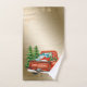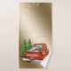Camion rouge avec des cadeaux, des pins et des flocons de neige sur un arrière - plan brillant.