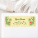 Étiquettes d'adresse de retour personnalisées avec une lettre noire pour votre nom et des lettres simples pour votre adresse une gravure vintage de pin vert et de pin rouge sur un arrière - plan faux parchemin.
