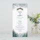 Ce programme de mariage d'arbre de pin dispose d'une police moderne ludique et de verdure riche contre une page blanche avec un ciel bleu. Parfait pour un mariage rustique ou pour toute occasion spéciale.