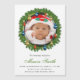 Carte de faire-part de naissance de Noël ornée d'une belle couronne décorée de baubles colorés. Ajoutez tous vos détails sur ce modèle facile à utiliser et ornez cette carte avec la photo de votre bébé pour en faire un faire-part unique.