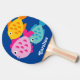 Raquette de ping-pong personnalisée avec nom ou monogramme pour tennis de table. Idée de cadeau d'anniversaire pour hommes, femmes et enfants pour jeu de sport. Design mignon de poisson sous-marin. Couleur de fond bleu personnalisée. Cadeaux amusants pour joueur et entraîneur. Illustration vectorielle drôle d'animal de vie marine d'aquarium en couleur.