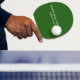 Raquette de Tennis de table avec le slogan "Ensemble, faisons briller le Togo comme l'or de l'humanité" inscrit d'un côté.