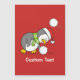Un petit dessin de pingouin portant un chapeau santa et une écharpe verte se pliant pour obtenir une boule de neige en évitant une autre.