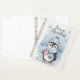 Une charmante illustration hivernale d'un adorable petit manchot portant un casquette rayé bleu et une écharpe, apportant une ambiance cosy et festive. Les flocons de neige doux et les tons bleus doux de l'arrière - plan créent une atmosphère hivernale magique. Parfait pour les cartes de Noël, les affiches, les autocollants et l'artisanat saisonnier !