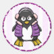 Pingouin mignon pourpre avec Stickers Bouffées d'oreille pour Noël ou la saison des fêtes