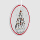 Cet ornement de voeux de Noël amusant présente une pyramide comique de pingouins équilibrée sur une glace. Quelle belle façon de donner le ton à votre prochaine fête de vacances. Personnalisez-le avec votre propre salutation de vacances! OEuvre originale. Copyright Leah Wiedemer.