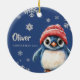 Apportez la gentillesse à votre arbre de vacances avec ce ornement de Noël personnalisé, qui fait partie des Contes d'hiver enchantés. Doté d'un pingouin de Noël portant un casquette douillet contre un arrière - plan bleu festif aux délicats flocons de neige, cet ornement fait un réconfort pour les enfants, les familles ou les amoureux des animaux. Customisez avec un nom et une année pour créer une décoration unique qui sera chère pour les années à venir. Parfait comme un pot-de-vin, une étiquette-cadeau ou un héritage familial ♡ Voir plus de cette boutique ici : https://www.zazzle.com/store/north_pole_boutique ♡