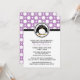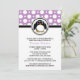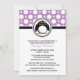 Des invitations élégantes et mignonnes à la douche pour bébés, conçues dans un motif assorti de pois violets et blancs, avec un adorable petit manchot noir arrondi, et imprimées sur mesure avec vos détails de fête.