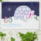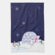 Cette belle serviette a un petit couple mignon de pingouin se reposer par leur étang glacial et une famille adorable des ours blancs errant autour une nuit étoilée dans la neige.