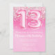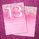 Invitation 13e anniversaire rose Fille Parties scintillant rose invitation pour une fille de 10 ans avec écriture de script moderne et des ballons amusants en feuille de papier.