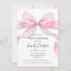 Celebrate your little one with this charming pink and white gingham baby shower invitation featuring a sweet decorative bow for a classic and elegant touch. The soft gingham pattern creates a timeless look that is perfect for a baby girl celebration.