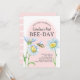 Bee birthday invitation with pink background and watercolor daisy flowers! So sweet for a baby girl's first birthday party. © 2025 Tea Olive Co.