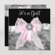 Belle invitation noir damassé arc rose rose et baby shower noir. Ajoutez vos détails à l'avant et à l'arrière en cliquant simplement sur le bouton "Customiser!" pour commencer à ajouter vos détails d'événement, le style de police, la taille et la couleur de police et le libellé. Veuillez noter que tous les modèles d'invitation que vous trouverez sur Zazzle sont des graphiques imprimés sur papier plat stock sans bijoux, arcs, surélevés, gaufrés, ou pièces ou pièces ajoutées.