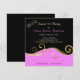 Voici une élégante invitation Sweet 16 Birthday Party qui est girly et sophistiquée. La carte rose vif et noire à deux tons est divisée par un joli tourbillon doré. Votre texte personnalisé est en or clair et correspond au rose en haut, avec un champ de texte supplémentaire en noir sur la partie rose en bas. Le dos de l'invitation est noir.