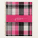 Modern 3 ring binder with a pink black tartan plaid design and a white scripted name. Personalize with your name on the cover and text on the spine.