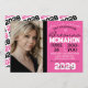 Hot Pink, Black & White Modern Graduation Invitation - 1 Photo Sur White Repeating Class Année Retour Imprimé ou numérique // Téléchargeable