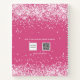 Pink background with blush pink faux glitter dust. The title: journal written with a girly modern hand lettered style script with swashes. White colored letters. A notebook for drawings, sketching, notes and school homework.