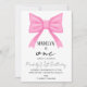 Pink Bow 1er Anniversaire Invitation Girl, Coquet