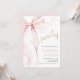 Pink Bow 70th birthday invitation. Modern feminine design in blush pink and gold. Features trendy watercolor coquette bow, and heart script font "seventy". Perfect for an elegant style women's bday celebration. Personalize with your own details. Printed Zazzle invitations or instant download digital printable template.
