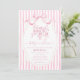 Celebrate a sweet new arrival with this elegant “Baby in Bloom” baby shower invitation. Featuring soft pink stripes, a delicate floral illustration, and a graceful ribbon bow frame, this design feels romantic, fresh, and timeless. The blush pink palette and airy layout make it perfect for a joyful spring or garden-inspired celebration.