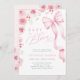 Celebrate the season of new beginnings with this sweet Baby in Bloom baby shower invitation, featuring soft spring florals, a delicate pink bow, and charming coquette-inspired design.