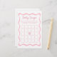 Ajoutez une touche de charme à votre célébration avec ce jeu de Bingo Bingo Bingo Baby shower Bébé Personnalisé Pink Bow. Parfait pour un thème de baby shower coquette, ce jeu de baby shower offre du plaisir aux clients tout en respectant le thème du baby shower arc rose. Idéal pour ceux qui recherchent des idées de jeu de baby shower et des idées de baby shower rose, ce bingo de baby shower arc ajoute une touche ludique à votre partie arc. Célébrez la maman à être dans le style avec ce jeu doux et mémorable.