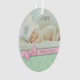 C'est un adorable et joli ornement modèle photo de Noël pour une petite fille. L'avant de l'ornement a votre propre photo, avec une image d'arc rose et un séparateur qui tient le nom de votre bébé. Le fond de l'ornement est un délicat motif tourbillon vert menthe vert pastel. L'arrière de l'ornement est le même motif tourbillon vert, arc rose, et séparateur tenant du texte supplémentaire. Ce ornement est assez polyvalent pour être utilisé comme bébé gardien de naissance, aussi ; il suffit de changer le texte à ce que vous voulez.