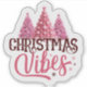 This cheerful sticker showcases three pink Christmas trees, adorned with shiny ornaments and delicate snowflakes. The playful text Christmas Vibes adds a joyful spirit, making it perfect for holiday greetings, decorations, or festive crafts.