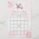 Turn gift opening into a delightful game with our Baby Shower Bingo card featuring a gentle pink cloudscape, sparkling stars, and a stork in flight. This dreamy design pairs beautifully with any girl baby shower setup. Guests can mark off items as the gifts are opened — the perfect blend of fun and elegance for your celebration.