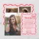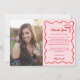 Un carte de remerciements de graduation dessiné à la main qui présente des graphismes de doodle décalés dans les tons rouge et rose et une police écrite à la main. Il y a de l'espace pour une photo sur le devant et deux sur le dos et c'est la façon parfaite de remercier vos invités d'avoir assisté à votre grand party. Associez-vous à tout ce qui se trouve dans la collection TILLY pour un look cohésif.
