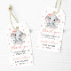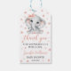 Aquarelle rose mignonne jeune éléphant, petite arachide merci étiquettes cadeaux pour baby shower fille.
