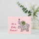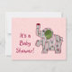 Personnalisez en ajoutant le nom du bébé à cette invitation de baby shower de style champêtre mignonne avec une image d'une courtepointe, motif floral, éléphant rose avec oreilles vertes. Jeu de baby-party à thème et garde personnalisée disponibles chez PhotographyTKDesigns.