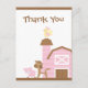 Cette fête d'anniversaire de filles merci carte postale a une grange rose et brune mignonne. Il y a un coq jaune et rose en haut, un cheval marron et un cochon rose en bas. Vous pouvez facilement customiser votre message de remerciement à l'envers. Cocoa Studio com